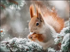 Śnieg, Lalki, Gałązki, Grafika AI, Iglaste, Zima