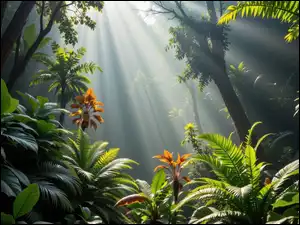 Rośliny, AI, Kwiaty, Las, Przebijające światło