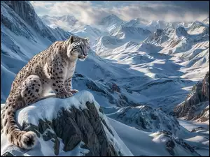 Zima, Irbis, Śnieg, Góry