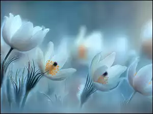 Grafika AI, Białe, Kwiaty, Sasanki