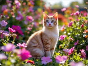 Kwiaty, Rudo-biały, Kot, Kolorowe