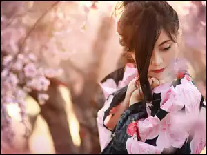 Bluzka, Drzewa, Kolorowa, Dziewczyna, Kwitnące