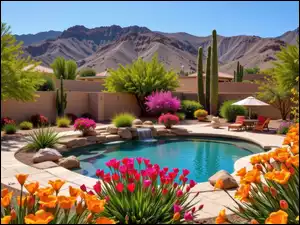Kwiaty, Drzewa, Kolorowe, Basen, Góry