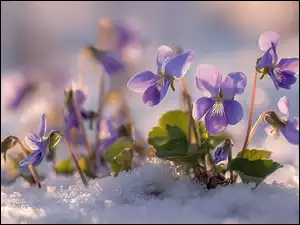 Kwiaty, Grafika AI, Fiołki wonne, Fioletowe, Śnieg