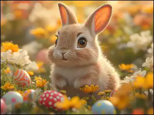 Kwiaty, Grafika AI, Pisanki, Królik, Wielkanoc