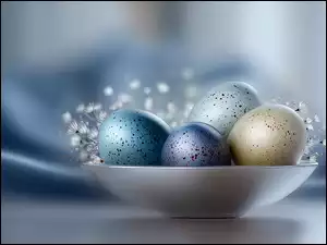 Pisanki, Wielkanoc, Białe, Grafika AI, Miska, Kwiatki