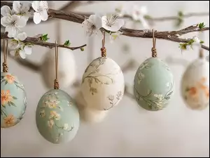 Niebieska, Pisanka, Kwiaty, Wielkanoc, Gałązki, Róże, Różowe
