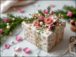 Prezent, Kwiaty, Pudełko, Różowe, Kokarda