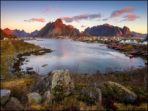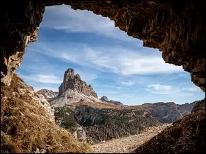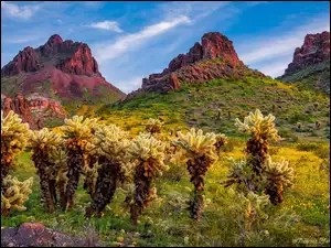 Łuk, Zachód słońca, Kwiaty, Kwiatowy, Kolorowe, Drzewa, Góry