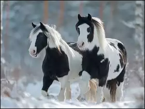 Ośnieżone, Zachód Słońca, Drzewa, Zima, Las