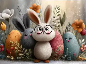 Pisanki, Trawa, Grafika AI, Kolorowe, Wielkanoc, Deski, Zielone